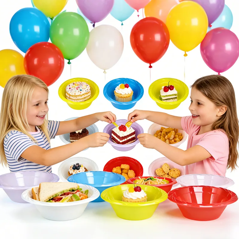 12oz 일회용 파티 플라스틱 그릇은 안전하고 무취의 식품 등급 플라스틱으로 만들어져 사용 시 안전하고 안심할 수 있는 경험을 보장합니다. 차가운 과일과 따뜻하고 가벼운 식사를 모두 담을 수 있어 다양한 음식 종류에 적합합니다. 색상 옵션은 빨간색, 파란색, 보라색, 흰색, 노란색, 분홍색 및 기타 다양한 색상 구성으로 다양합니다. 피크닉 담요 위에 놓으면 색상 팔레트와 유사하며 사진 필터 효과가 내장되어 있습니다. 그 외관은 세련되고 기능적입니다.