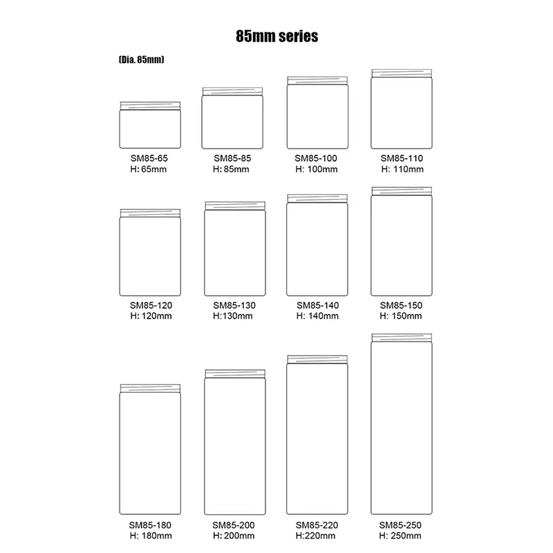 Ningbo Powerr는 다양한 크기의 뚜껑이 있는 다양한 PET 플라스틱 보관 용기를 제공합니다. 치수 범위는 85mm이고 높이는 65mm에서 250mm까지 다양합니다. 곡물 및 시리얼, 구운 페이스트리부터 수제 잼, 장난감 부품까지 모든 것을 안전하게 보관할 수 있습니다. 따라서 작은 부분부터 대용량 저장까지 홈 스토리지, 전자상거래 포장, 베이킹 매장 등 다양한 시나리오에 적합합니다.