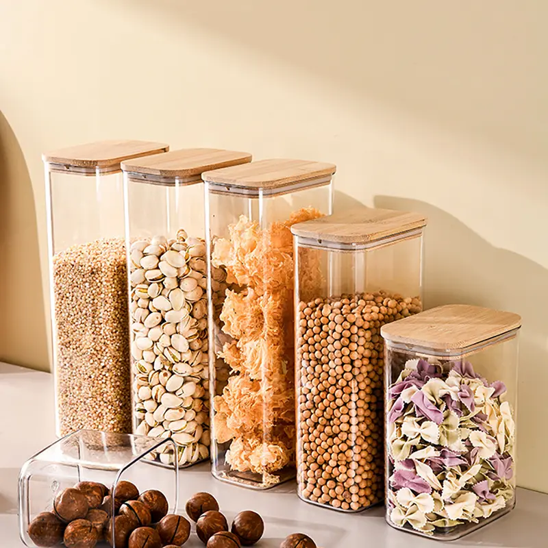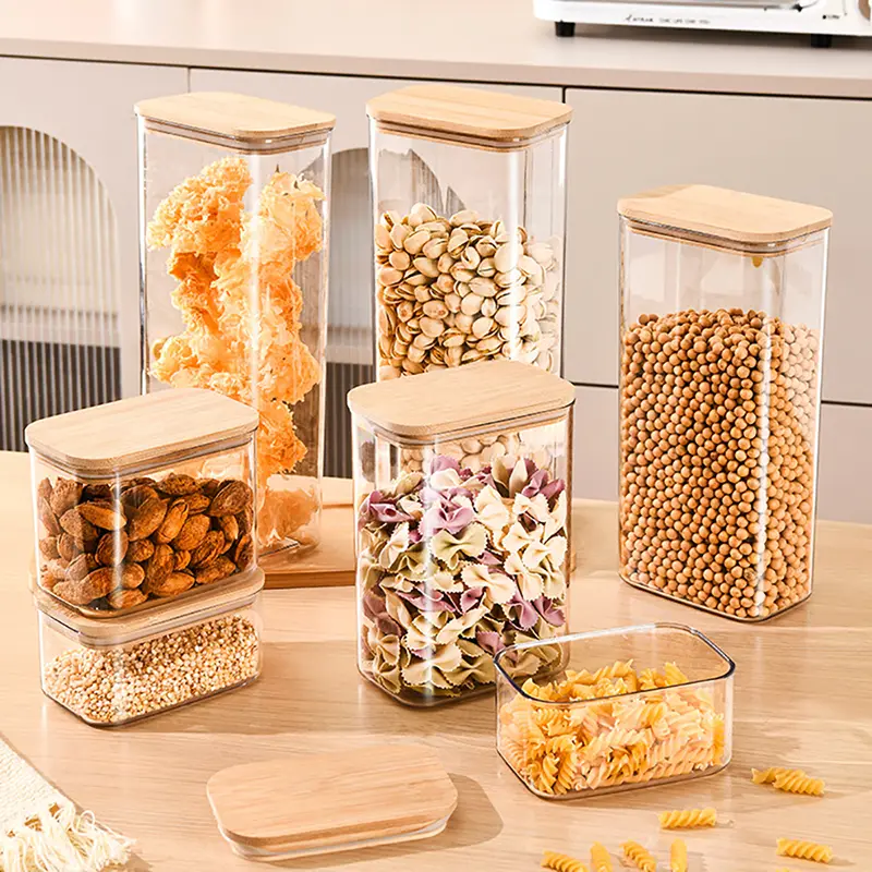 나무 뚜껑이 달린 플라스틱 보관 용기는 가정 주방 보관, 냉장고 냉장 보관, 조리대 건조식품 보관 등 다양한 시나리오에 적합합니다. 곡물, 시리얼, 사탕, 스낵, 차, 향신료, 건조식품 등 다양한 품목을 보관할 수 있습니다. 깔끔하고 정돈되어 있어 접근이 편리하며, 집안 환경을 더욱 청결하게 하고 주방 생활을 더욱 편리하게 만들어줍니다.