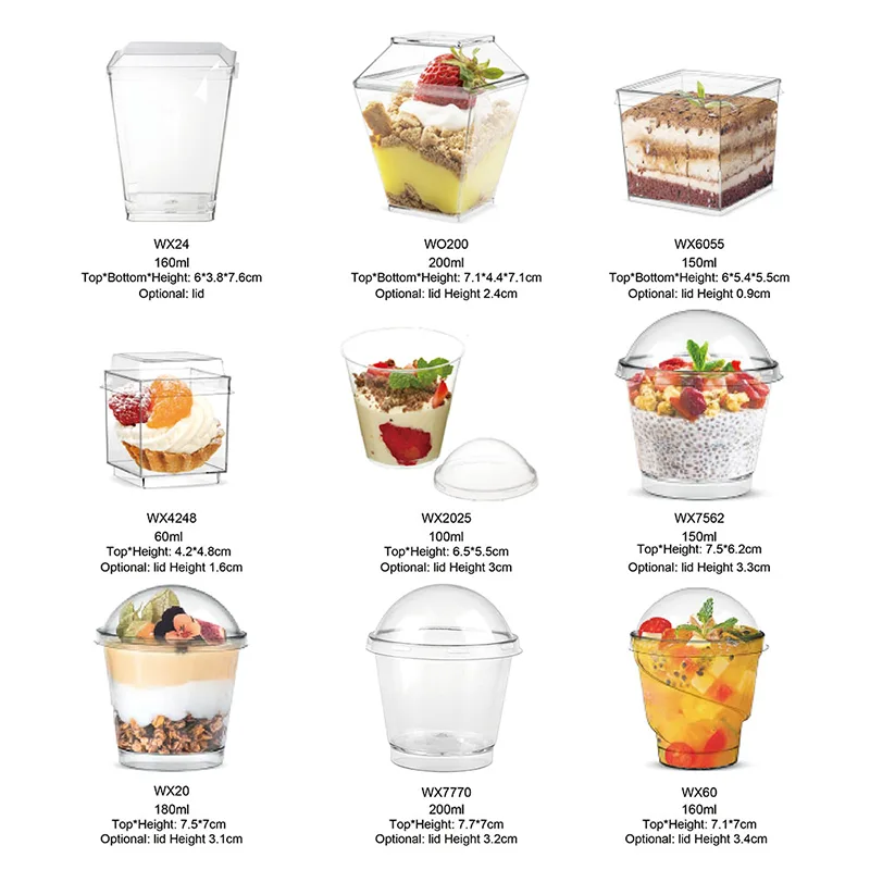 스타일이 다양하고 궁합이 강해 다양한 디저트와 행사에 잘 어울립니다. 뚜껑이 있는 품목은 식품 운반 및 운송에 적합합니다. 소용량 스타일은 테이스팅 컵으로 사용할 수 있습니다. 대용량 스타일은 모임의 요구를 충족할 수 있습니다.
